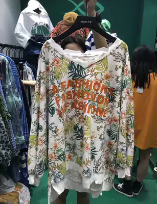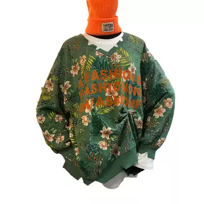 Pick up the leak V-neck letter floral Hong Kong style loose medium and long version of the sweater women's sports top 8979 non-refundable non-exchangeable