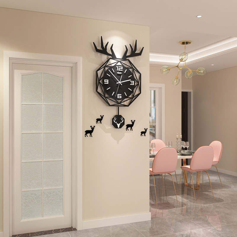 Nordic deer head wall clock wall clock Living room modern simple creative light luxury net Red fashion restaurant Home clock