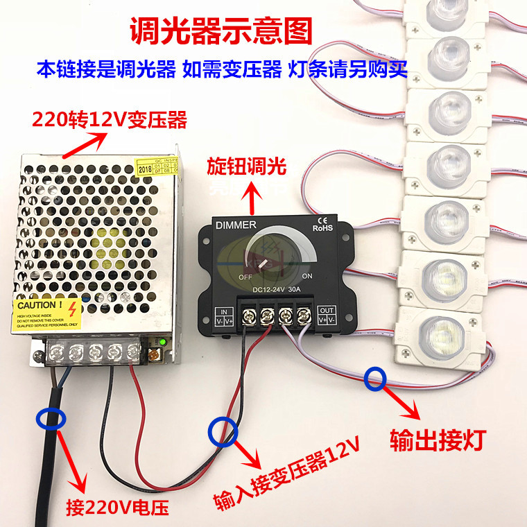 LED High Power Dimmer 12-24V 30A Brightness Regulator Light Box Door Head Advertising Light Strip Sign-Taobao