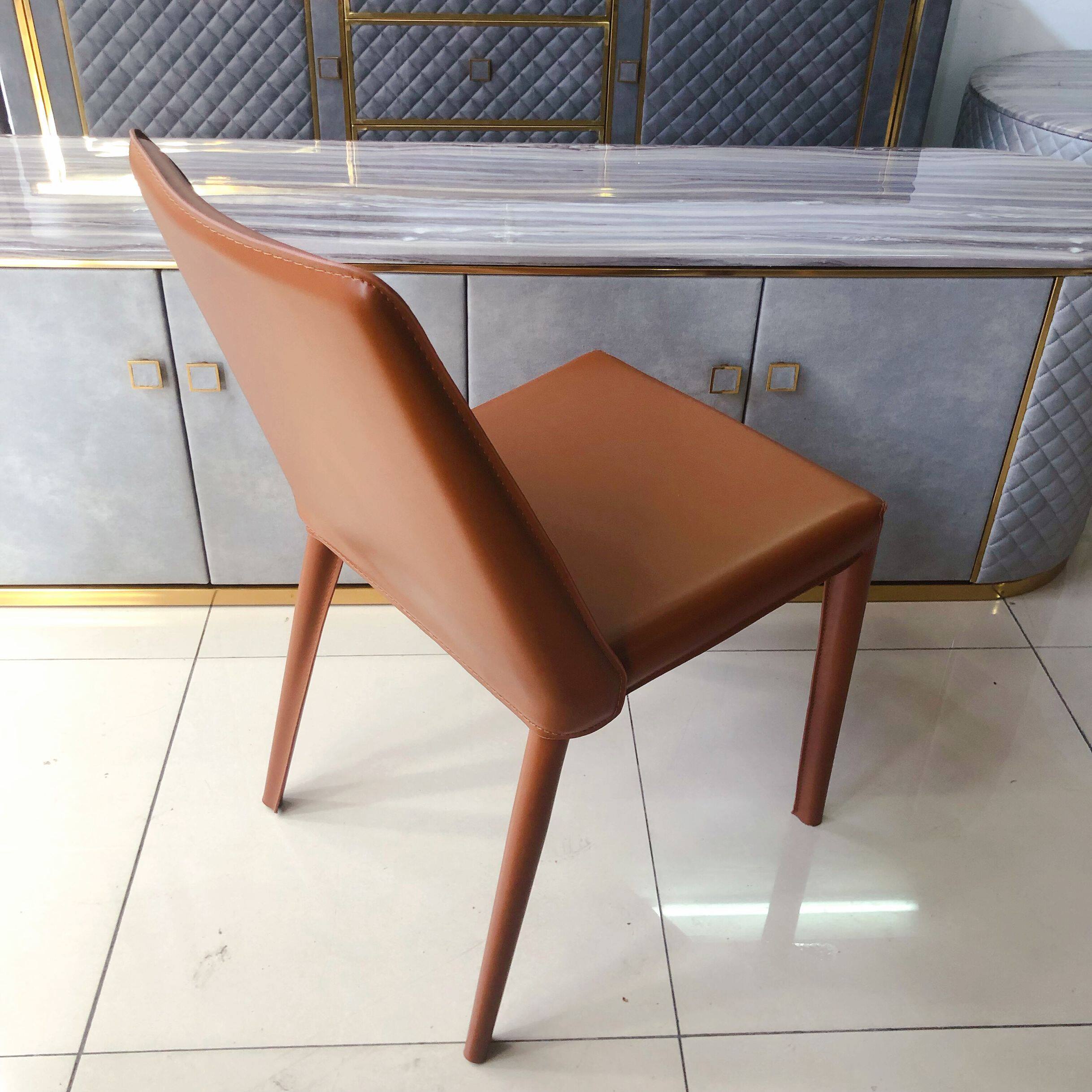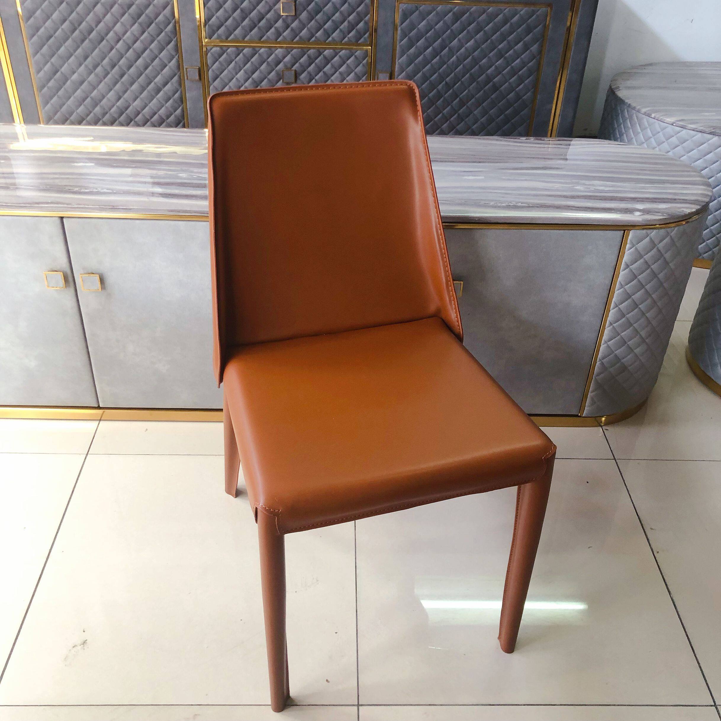 Backrest armrest seat Nordic light luxury dining chair modern minimalist home hotel dining room chair saddle leather cosmetic chair