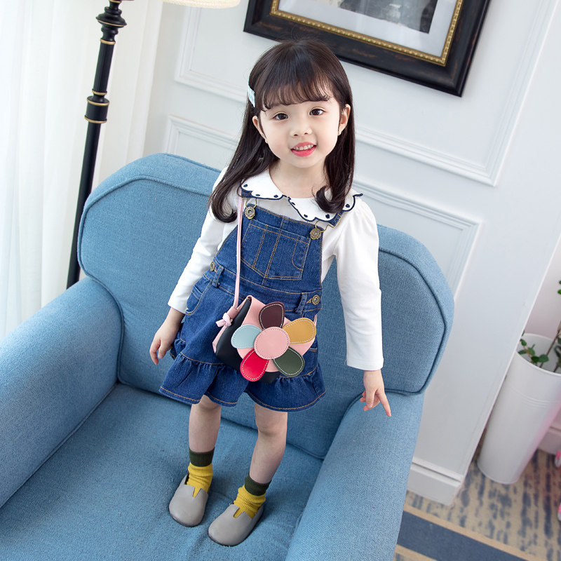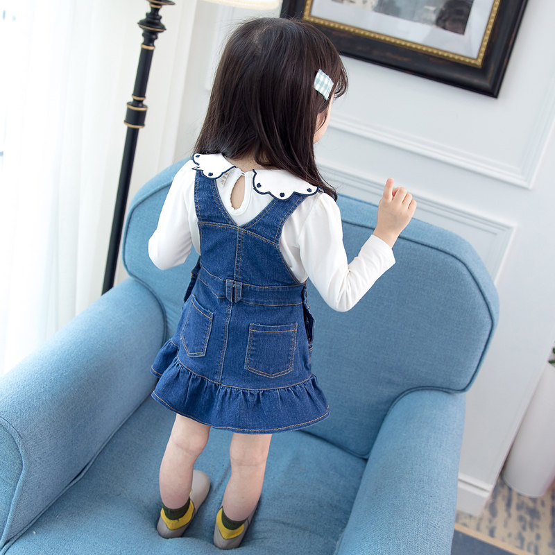 Girls denim baby bag skirt spring and autumn 1 Western style Korean version 3-year-old children's suspender skirt 2 autumn 5 little girl princess skirt