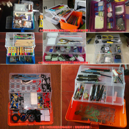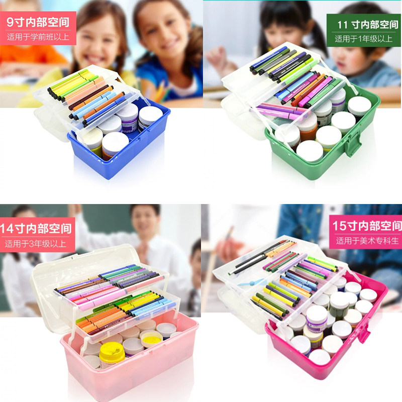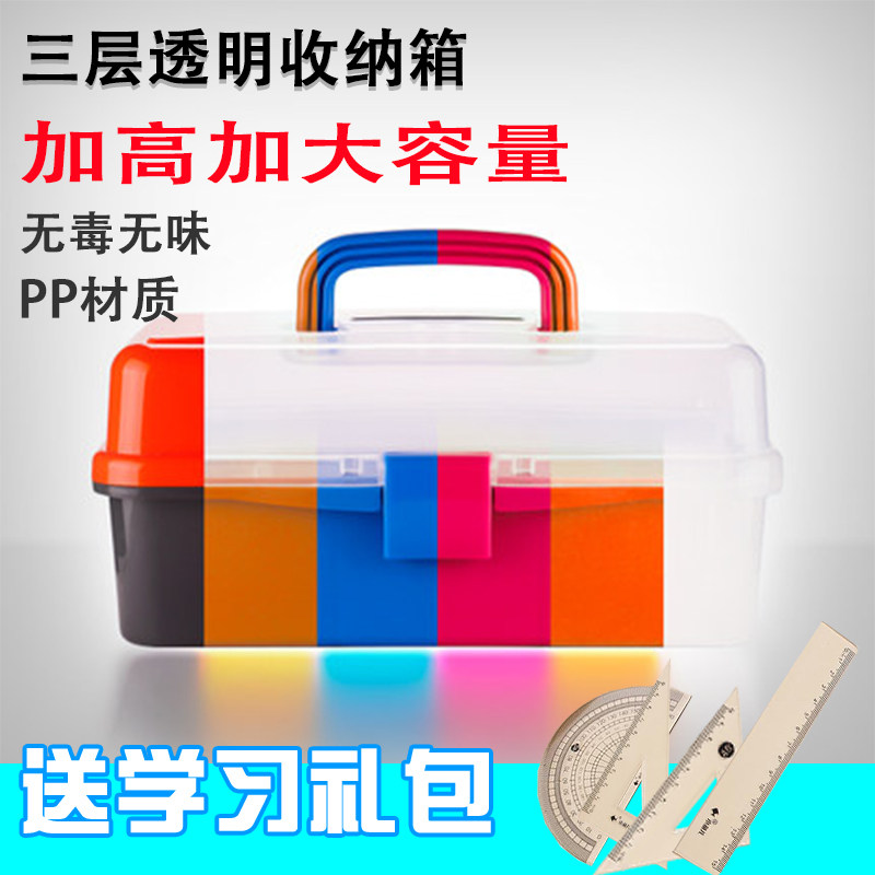 Plastic folding three layers of carton fine art toolbox multi-functional children's painting elementary school students transparent collection box large number
