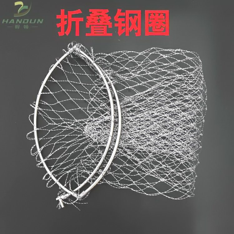Large object copy net stainless steel rod telescopic fishing net super hard solid folding steel ring fishing high horsepower net pocket fishing net