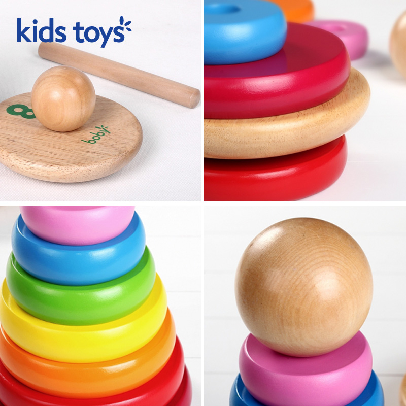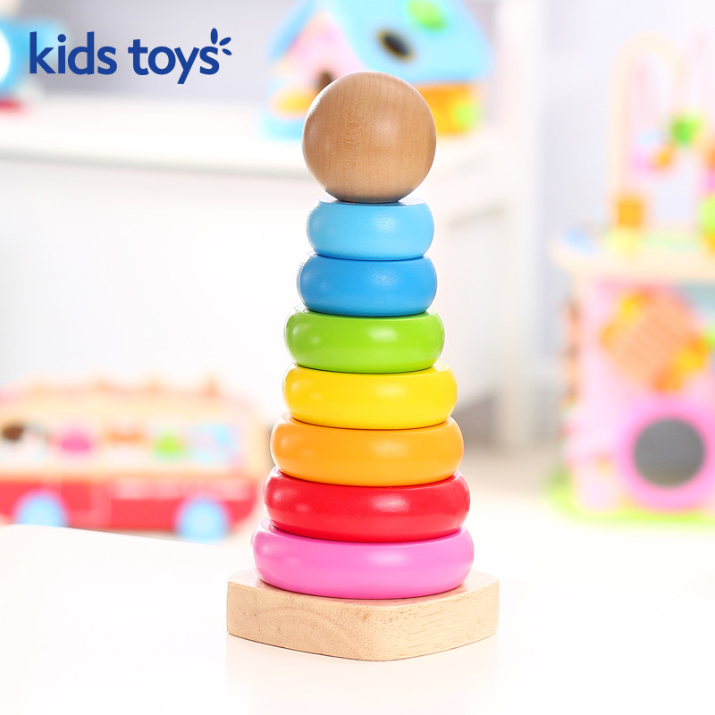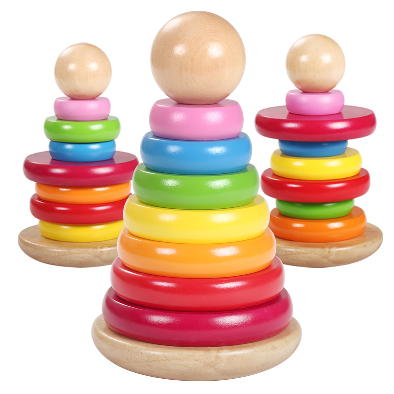 Children Stack Leanle Rainbow Tower Circle Wooden tumbler 0-1-year-old baby Puzzle Toy Collar Lap Heaps of Loops