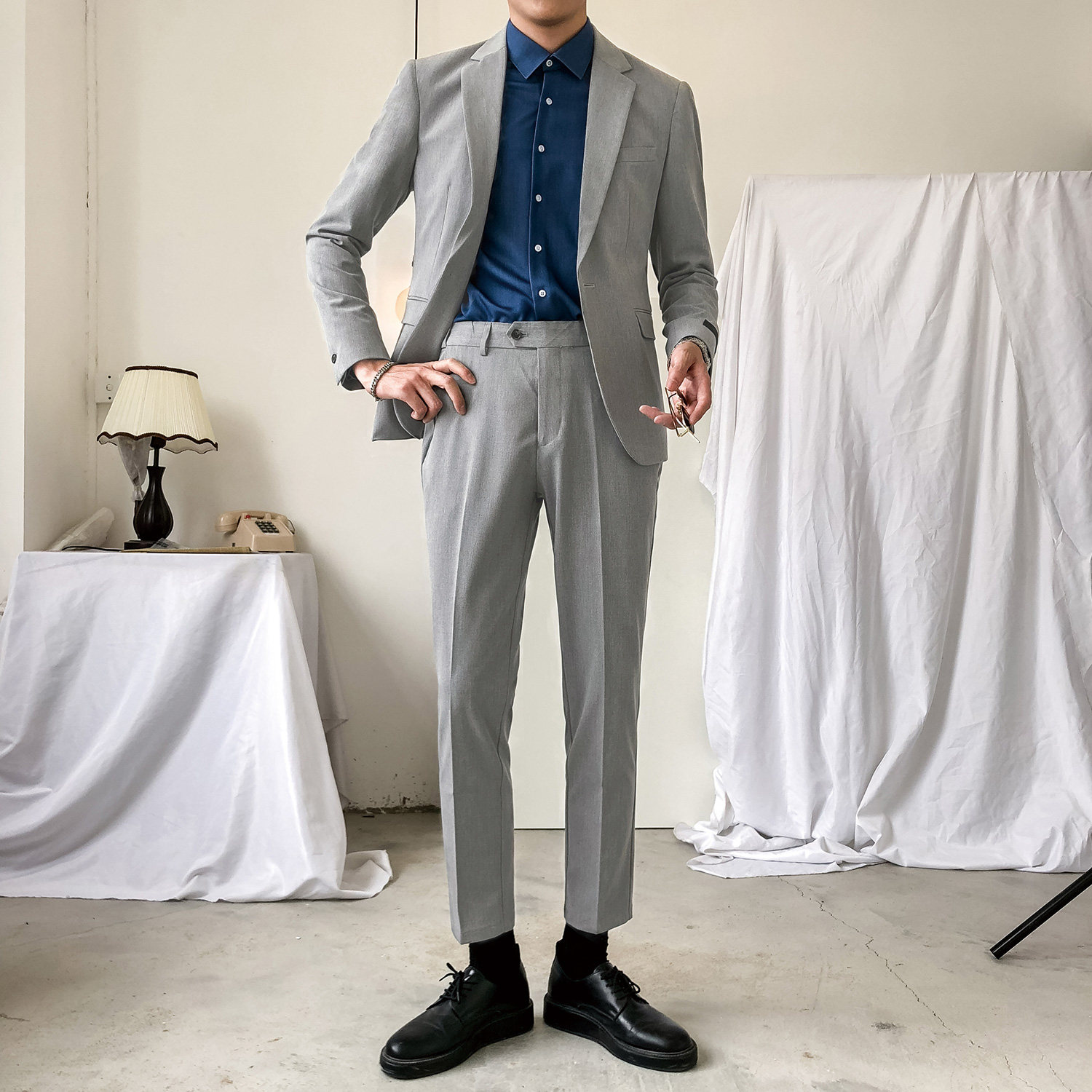 Light gray Solid color suit set