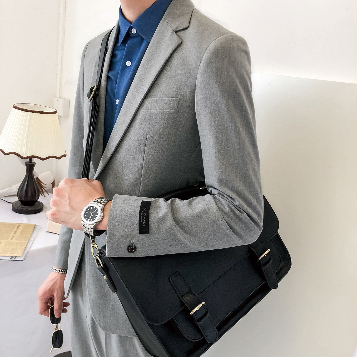 Dark gray solid color suit set