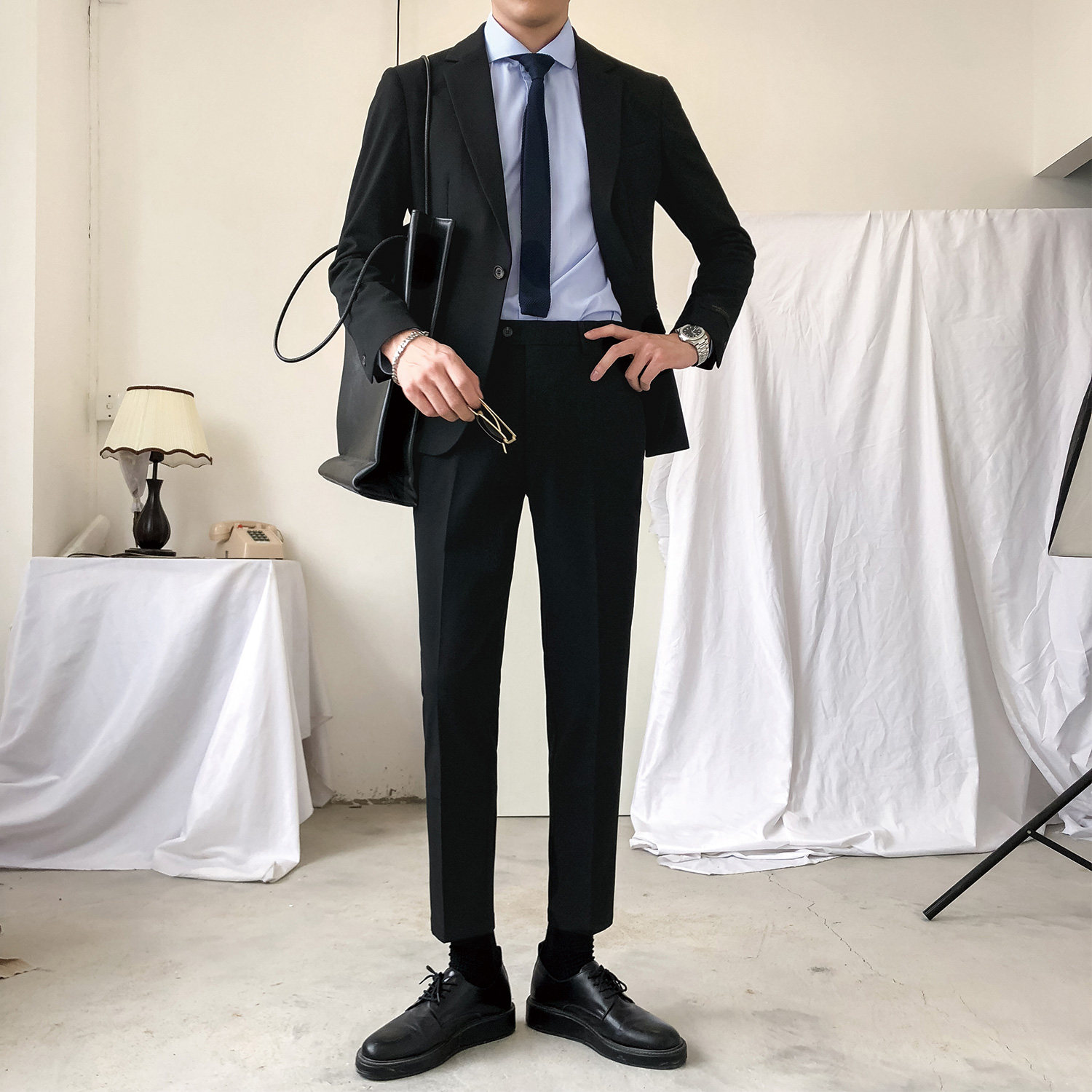 Black Solid color suit set