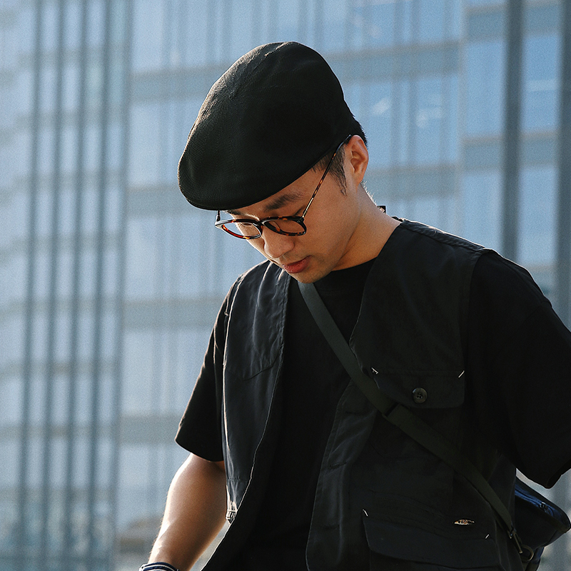 Acap Men And Women's Black Size Heads Walled Country Tide Day Series Street Retro Pure Color Hollowed-out Painter Thin Berets