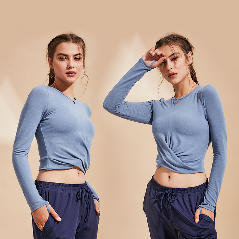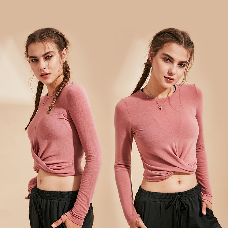 Spring Autumn New Cross Exposed Waist Sexy Display Slim Sports Blouse Fitness Yoga Sportswear Sportswear Elastic long-sleeved pregnant woman