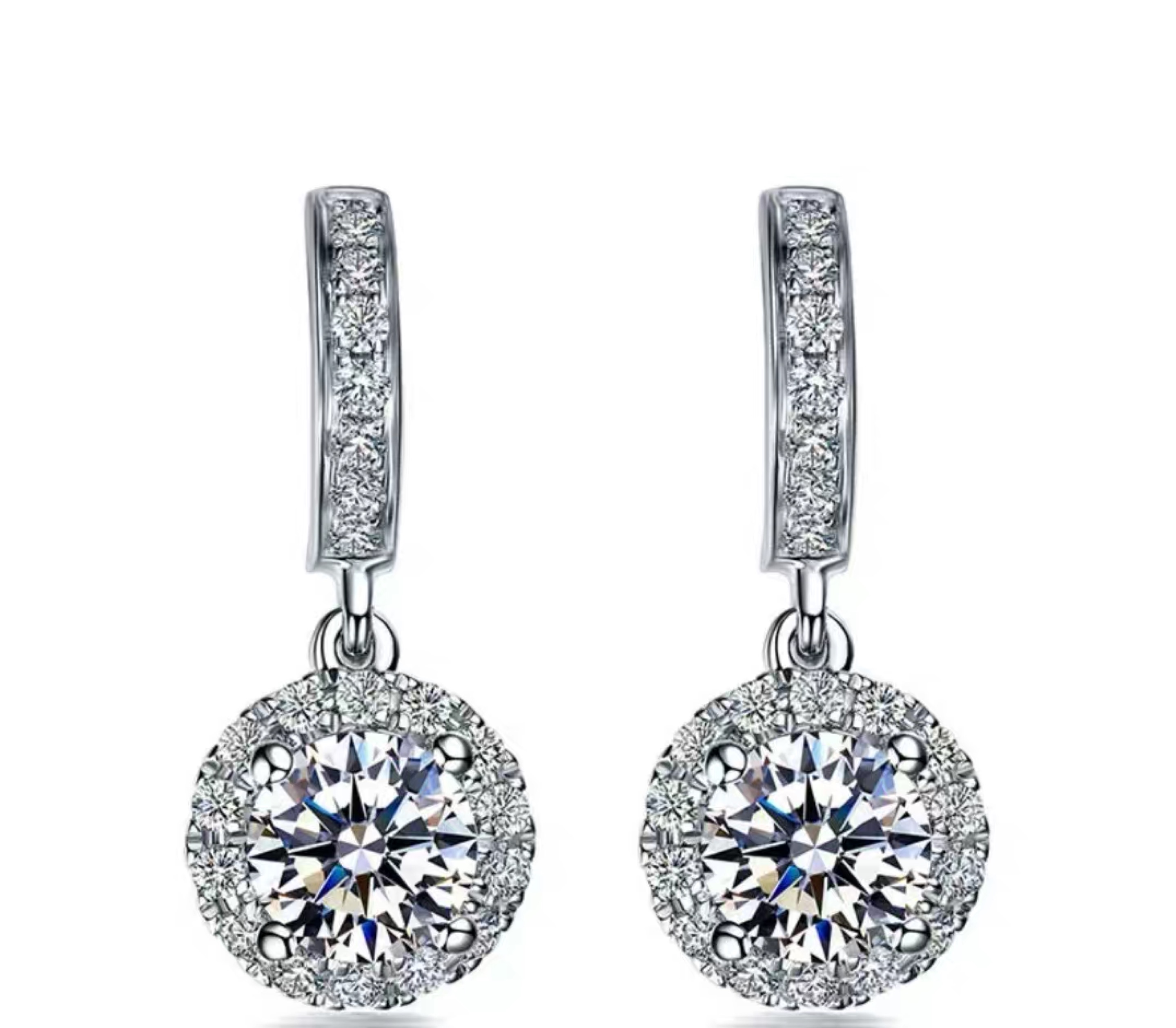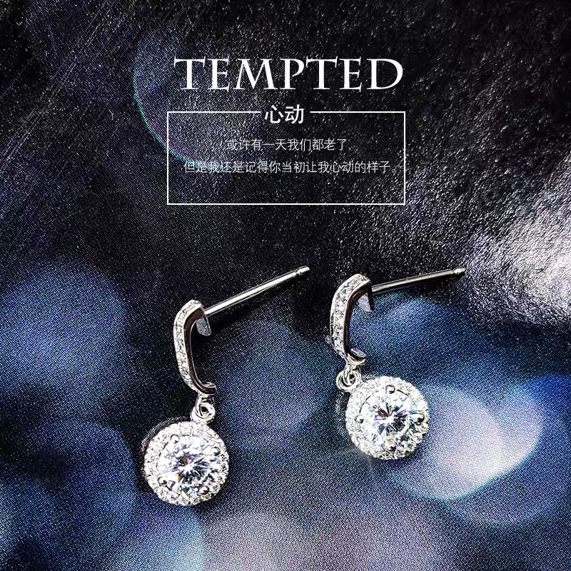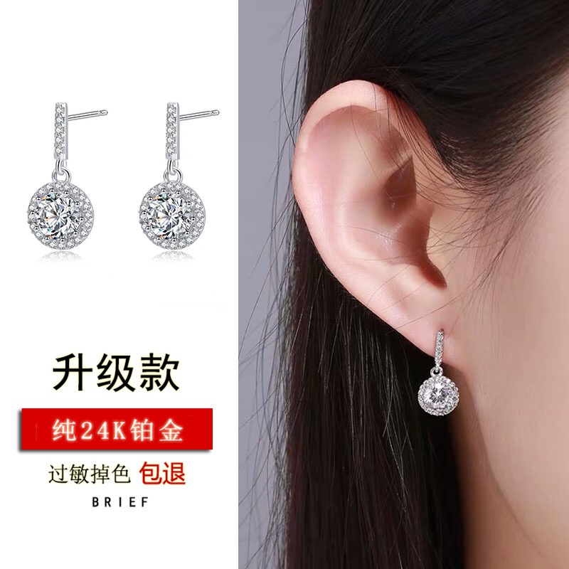 24K Platinum Studded Imported Mosanstone Quadpaw Outsourcing Drill Round Drill Earrings PT950 Long Version Earrings Pendant Woman