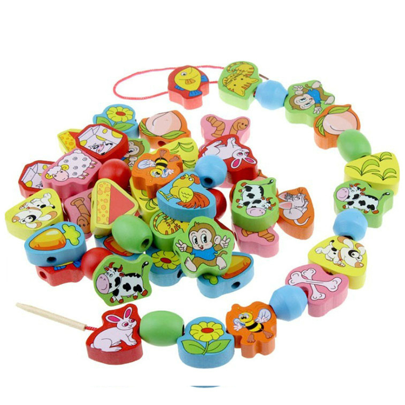 Young Children Strings Beads Intelligence Toys 4 Babies Wearing Beads 5 Wearing Rope 1-2 Years Old Wooden Building Blocks 3 Men Girls