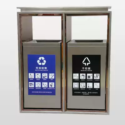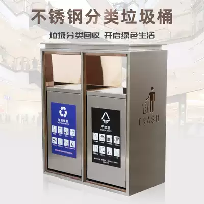 Stainless steel classification trash can Anti-fingerprint community dry and wet separation Hotel shopping mall Shanghai public place peel box