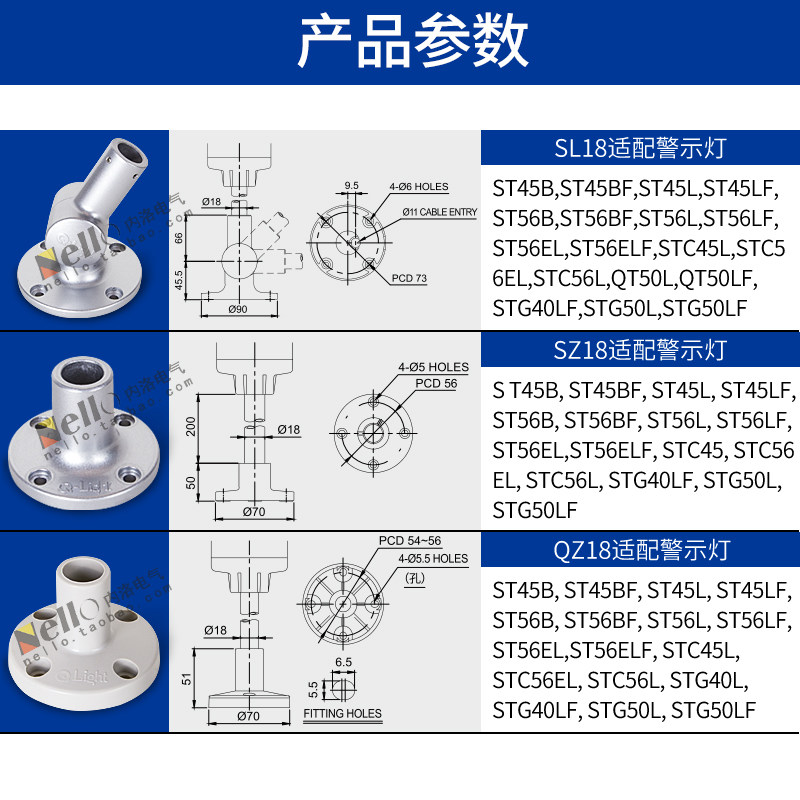 Canlight multi-layer warning light ST45 56 bracket SZA18 folding disc aluminum base SL QZ side mounted LB18