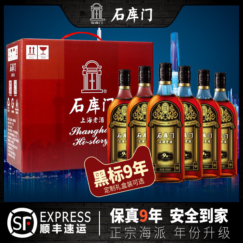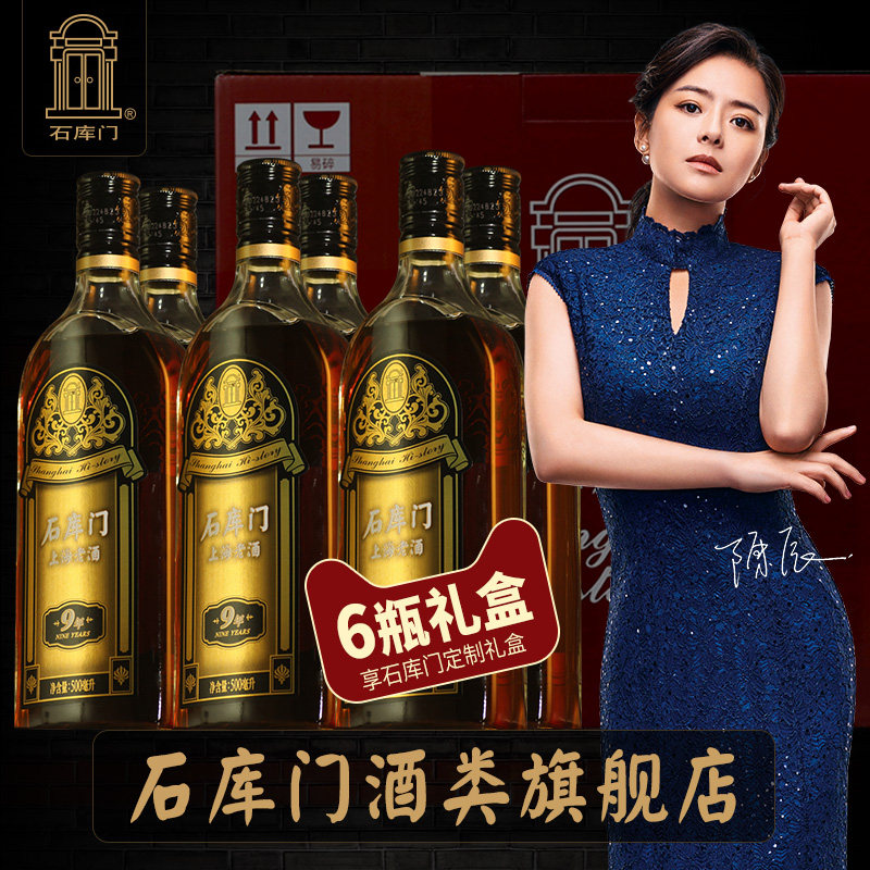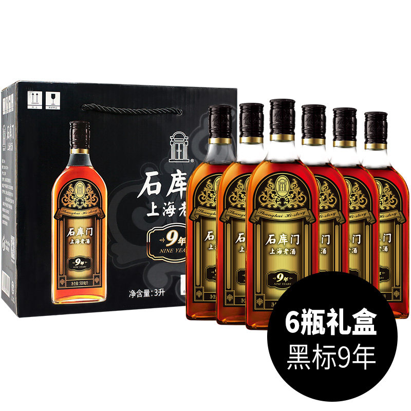 Shikumen Rice wine Shanghai Old Wine Black Label 9 years 500ml*6 bottles Special semi-dry rice wine gift box