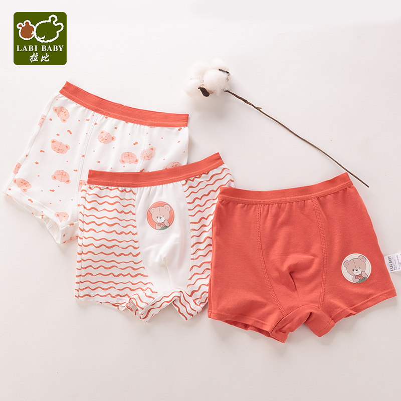 Rabi official flagship male baby pure cotton flat triangle four corners safety pants small and small boys and children's underwear 3 packs