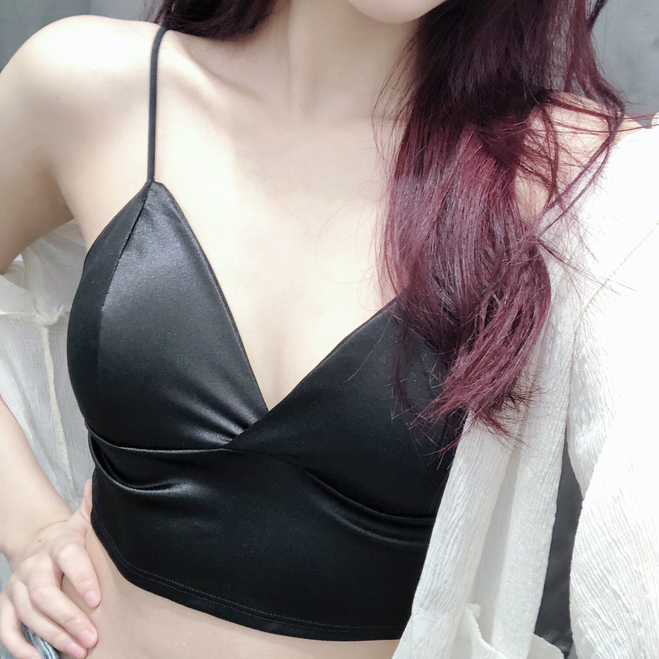 Sexy Dew navel Bottomless Strap Outside Wearing Harness Small Vest Silk Satin Smear Underwear Woman Wrap Breast bra No steel ring