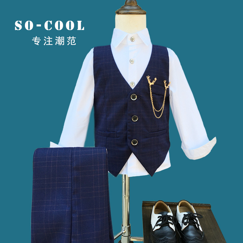 Flower boy gown boy suit Inron waistcoat Three sets of 2021 new autumn clothes handsome children walking show to show up
