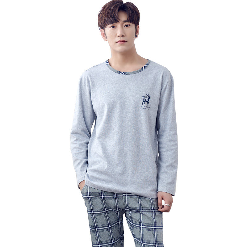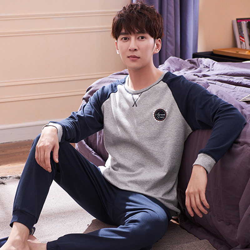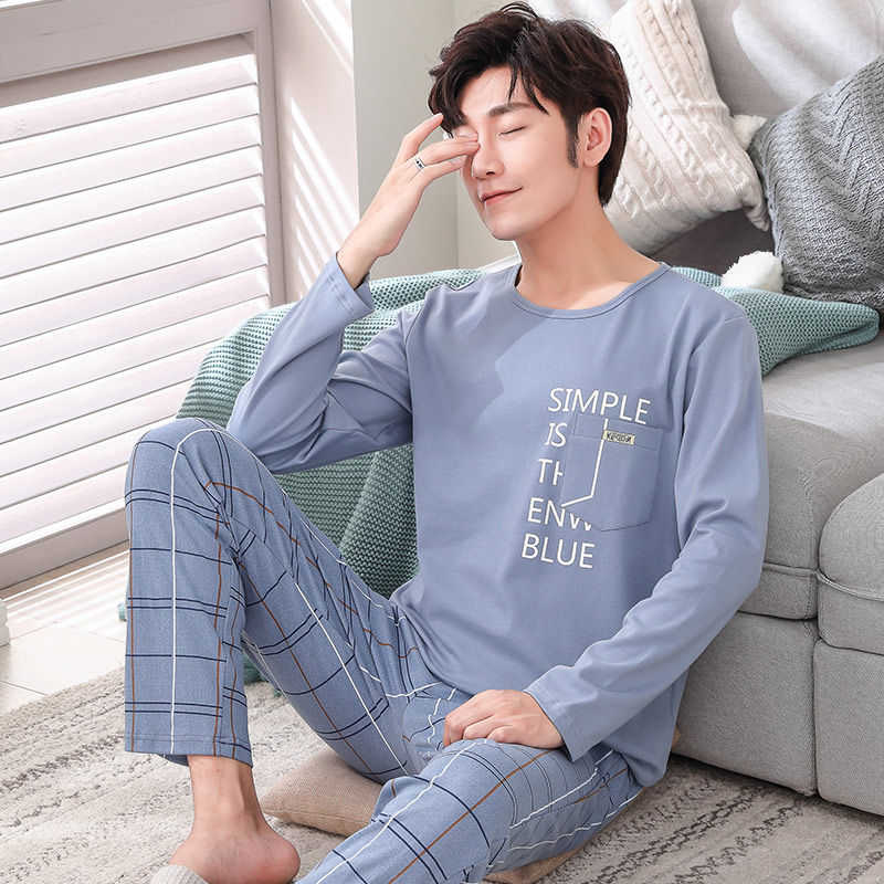 Pure Cotton Pyjamas Men's Spring Autumn Season Long Sleeves Full Cotton Men's Autumn Winter Teen Students Big Size Yard Casual Home Suit Suit