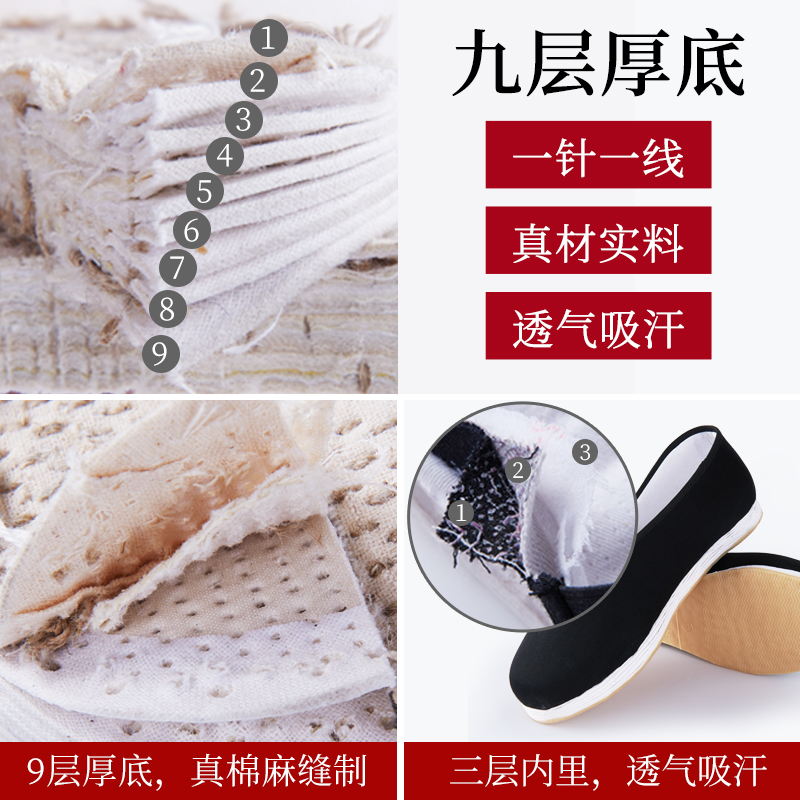 Old Beijing Cloth Shoes Official Flagship Store Officer Net Men's Spring Autumn Round Mouth Pure Handmade Klayer Bottom Anti Slip Breathable Bull Fascia Bottom