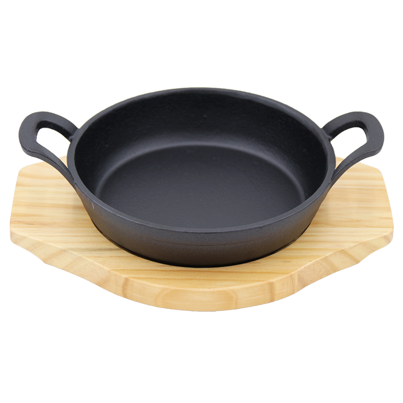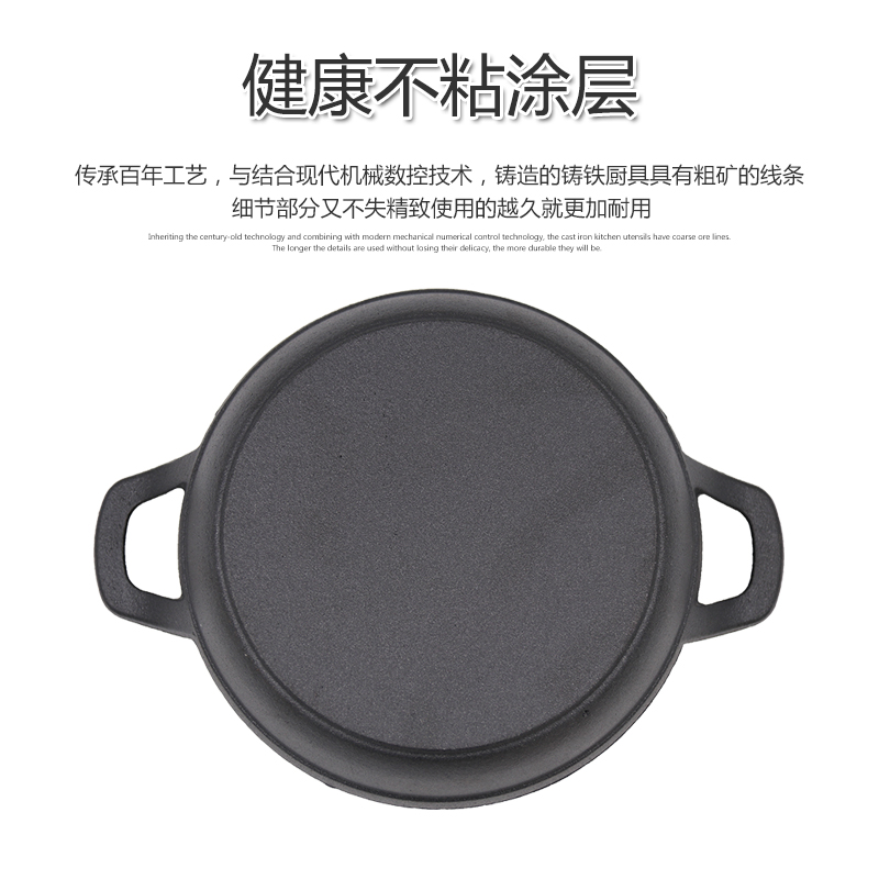 Round binaural cast iron pot commercial Italian baking rice pot iron plate pan mini flat bottom barbecue pot induction cooker