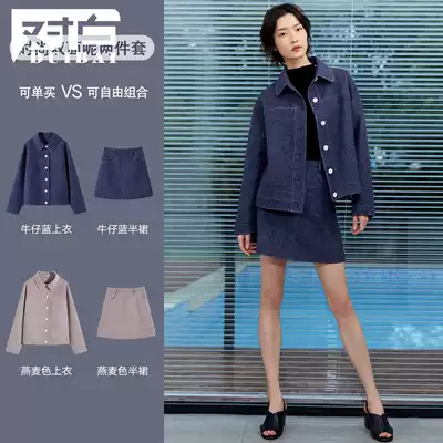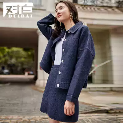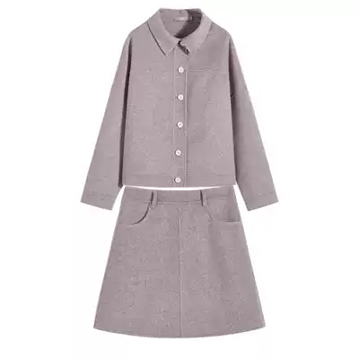 Woolen dress women 2021 Winter style to white double-sided wool coat set fashion A- line dress two-piece D2