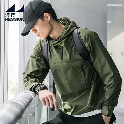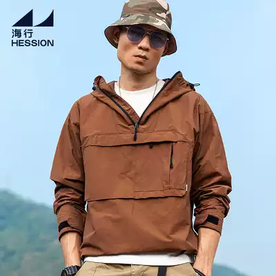 Hai Xing black hooded semi-zippered pullover casual shirt men's spring and autumn style sports windproof loose tooling jacket