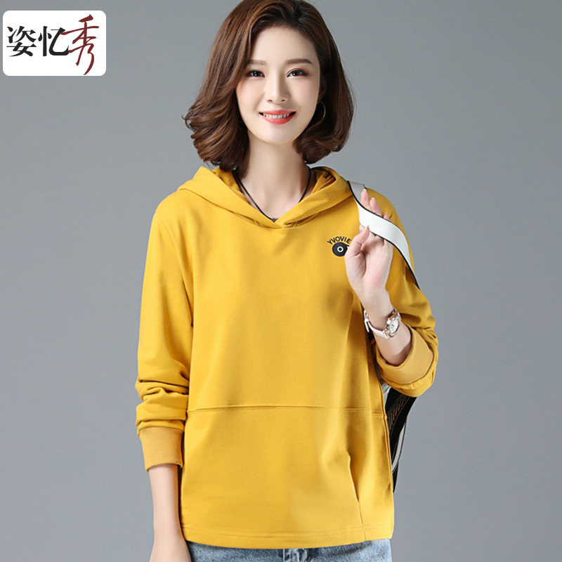 Beauty show hooded sweatshirt women 2021 new autumn solid color top Korean casual fashion print base shirt Cotton