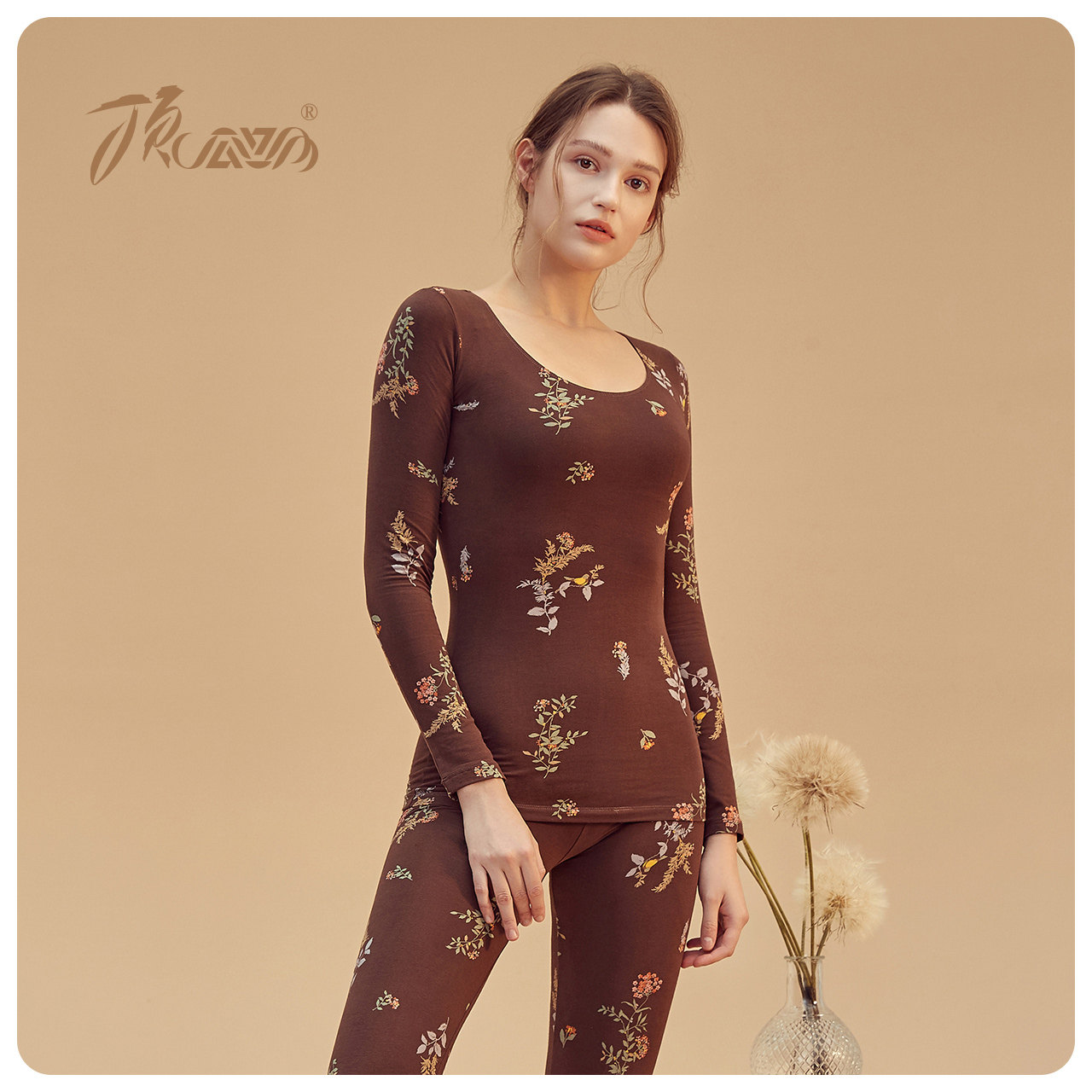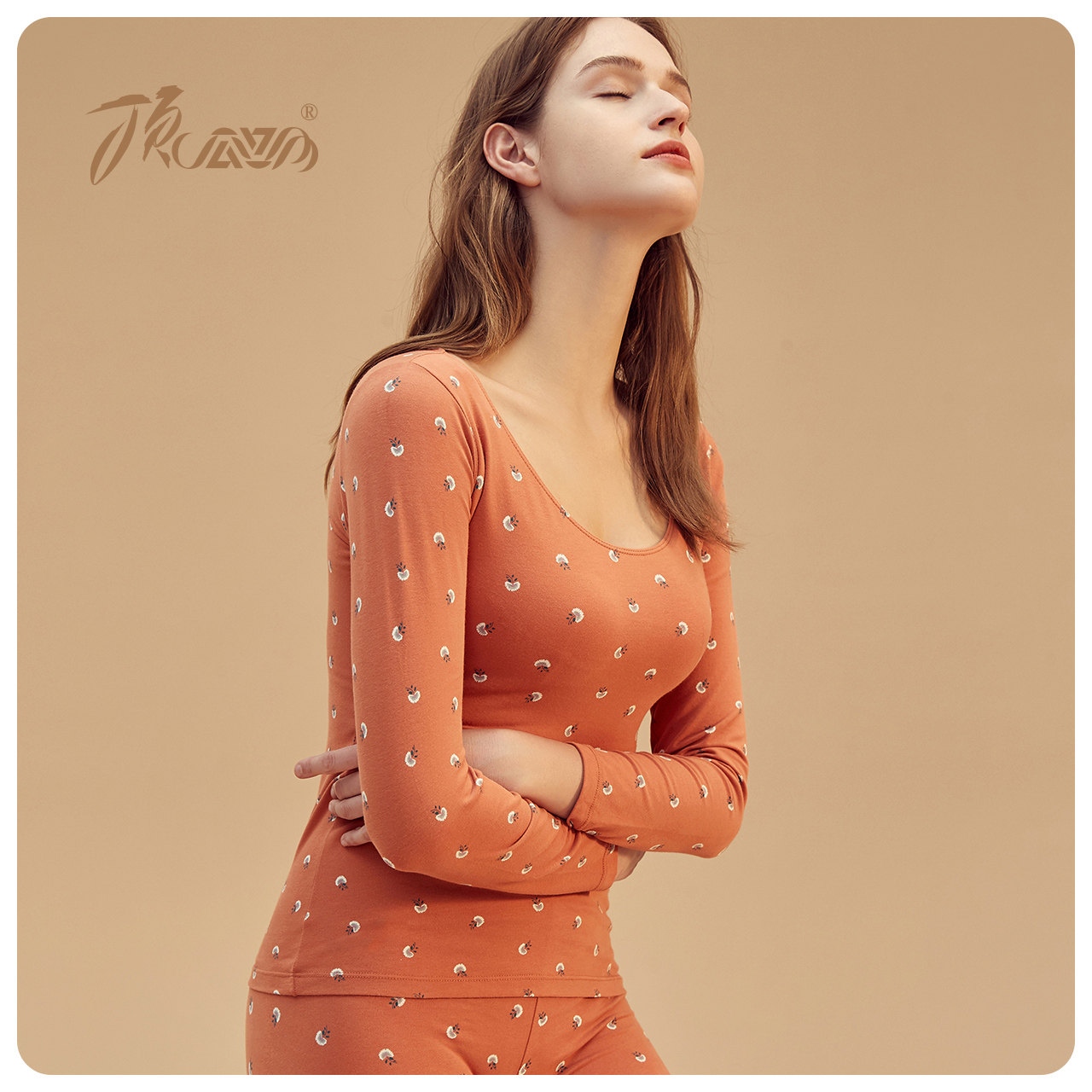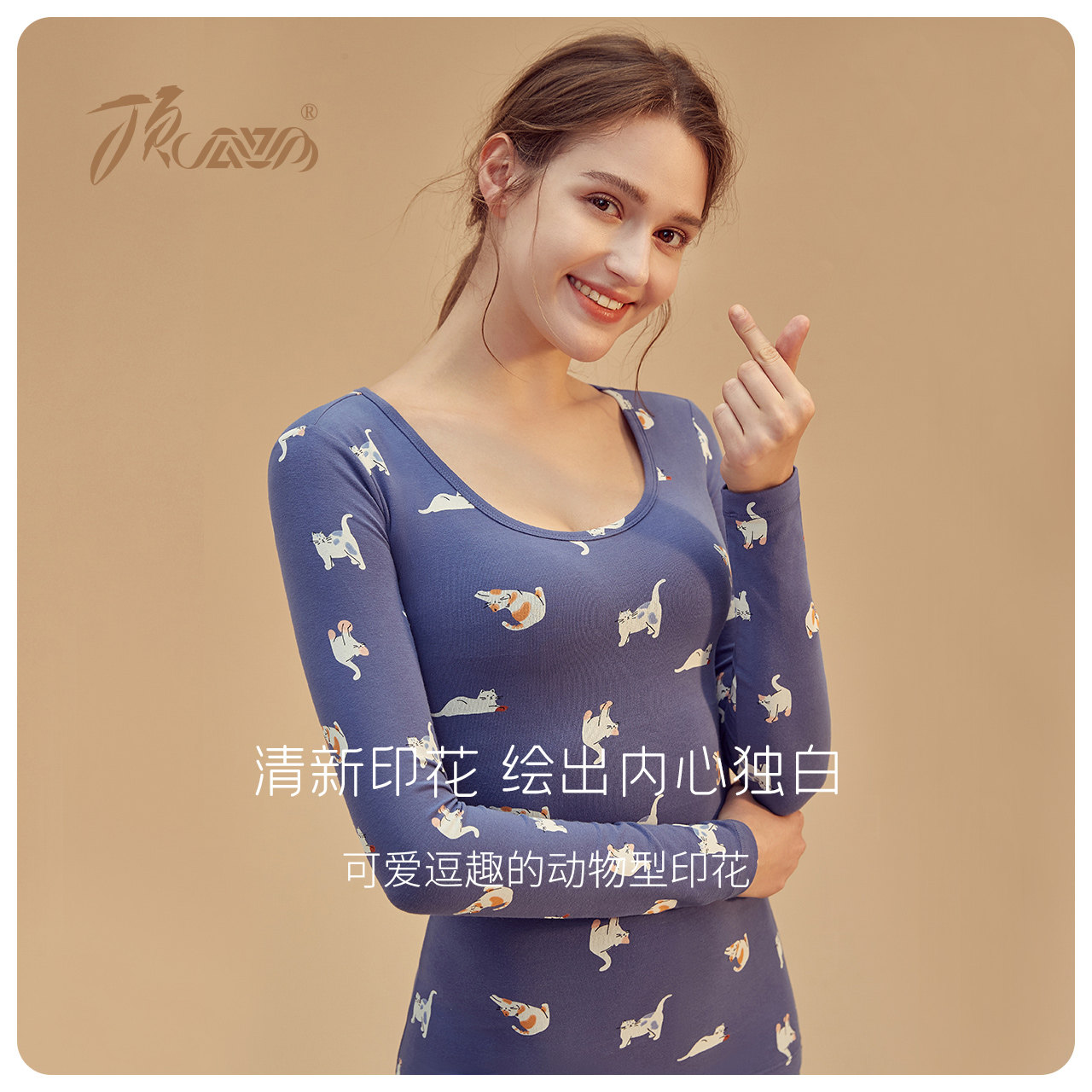 Top Guagua heating clothes women's base cotton large size autumn clothes sanitary pants printed thin women's suit cotton sweater winter