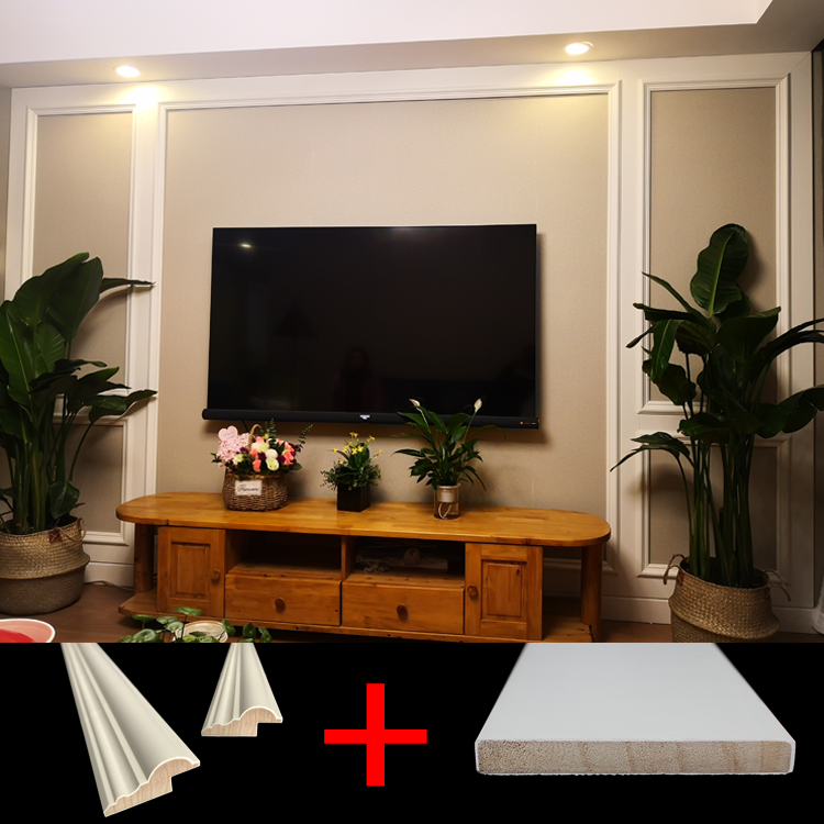 Custom natural solid wood lines Decorative wood lines Beige European living room TV background wall border modeling line