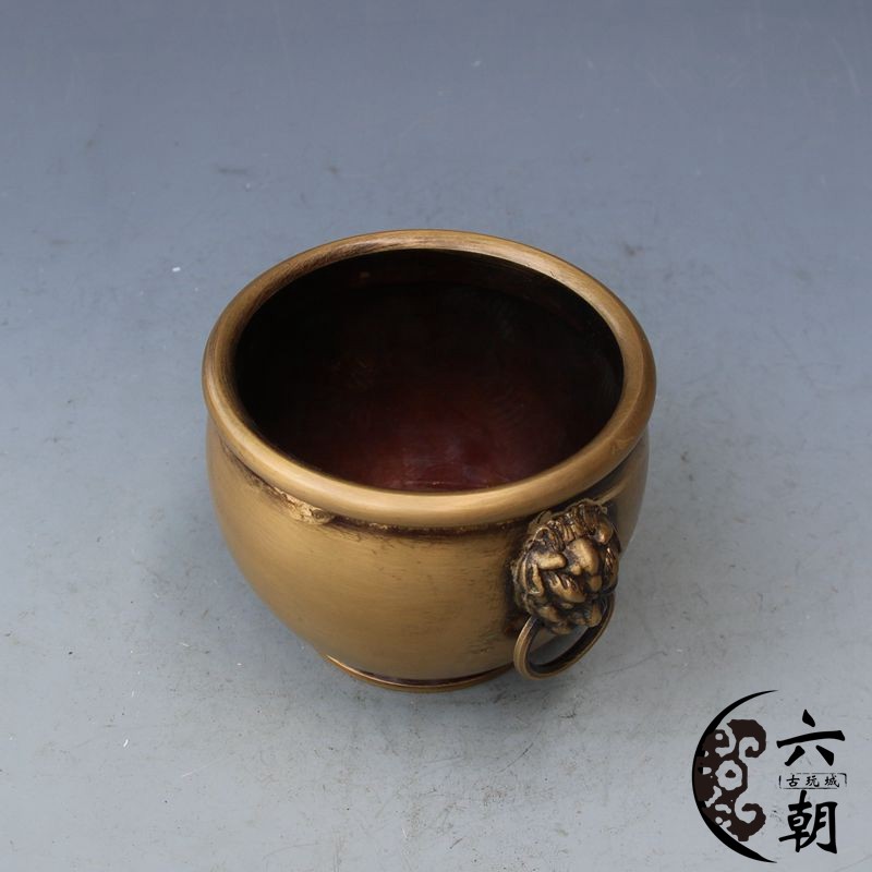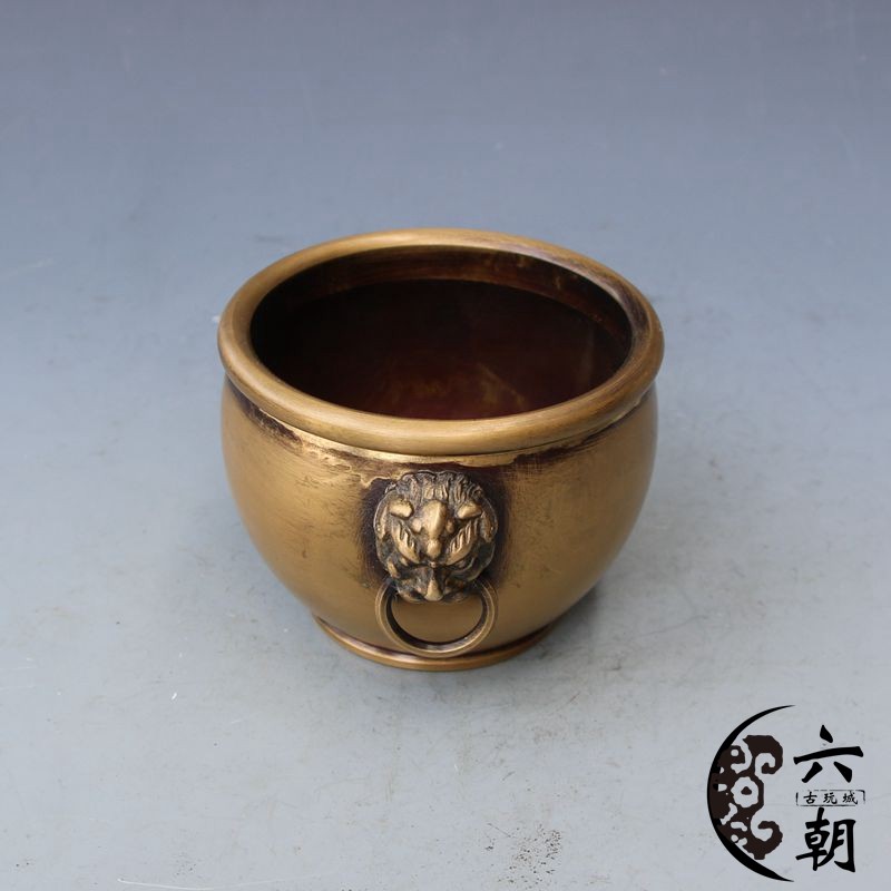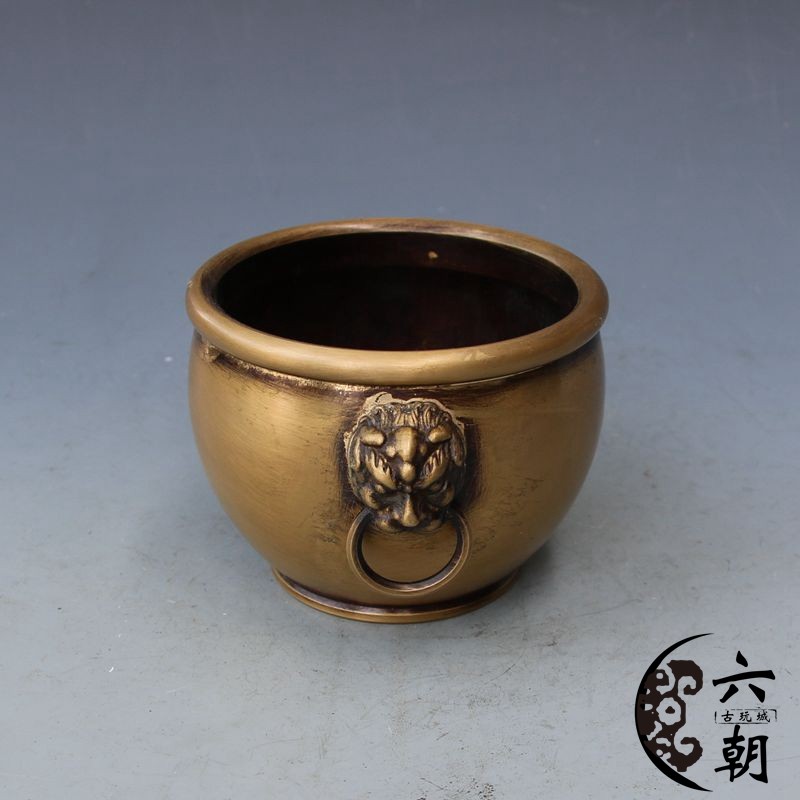 New Antique Bronze Ware Brass Lion Head Copper Cylinder Brush Washing Incense Furnace Ornament Home Decoration Craft Gift
