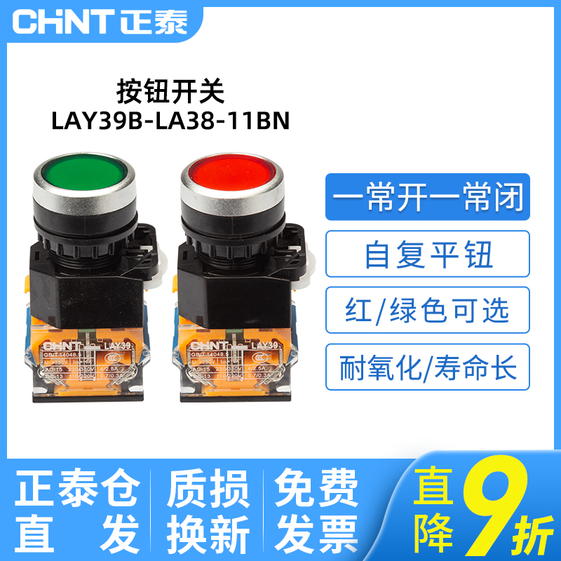 Chint push button switch self-reset switch button LAY39B(LA38)-11BN red and green flat button mushroom head