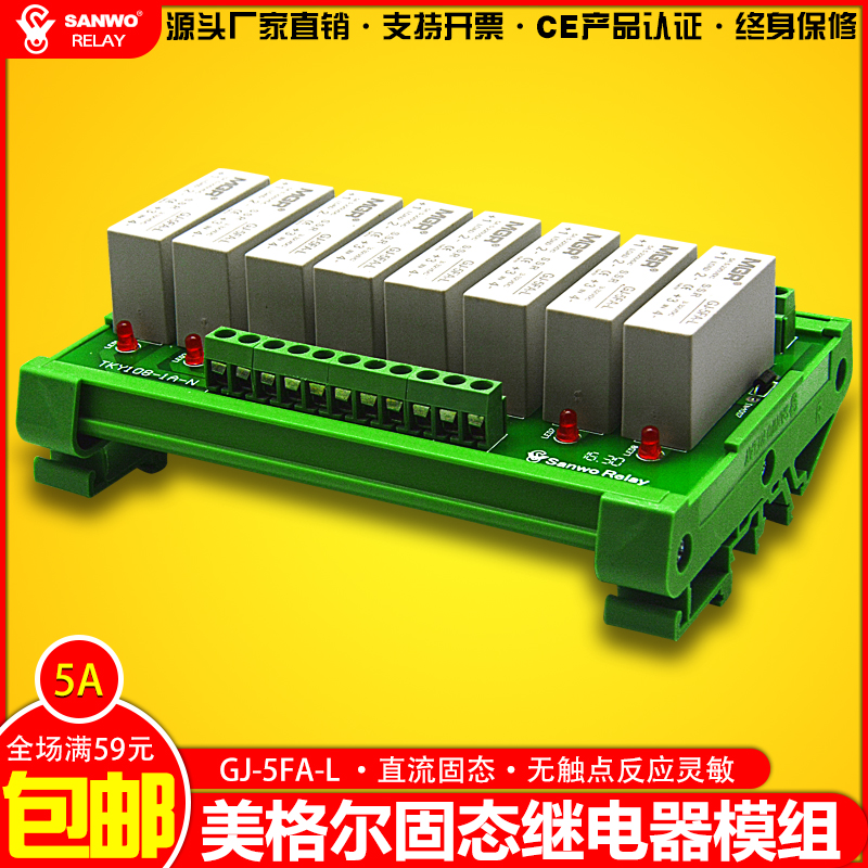 8-way electromagnetic AC DC solid-state relay module single wafer output power amplifying control board
