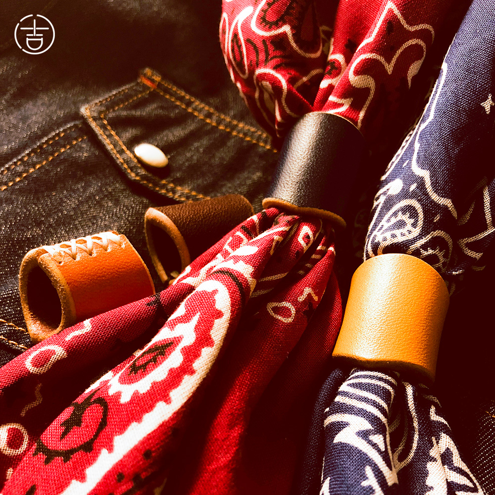 Handmade scarf buckle Italian bridle leather American retro Amy khaki locomotive leather scarf buckle silk scarf buckle