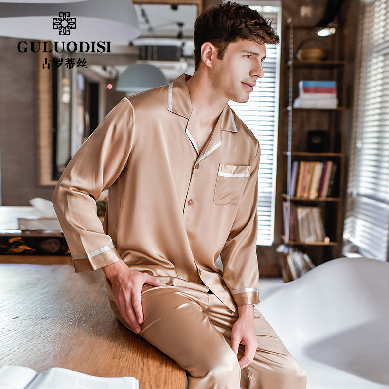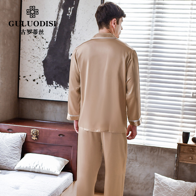 Gurotis heavy 22 mmi silk pajamas men two-piece set spring long sleeve trousers 100% mulberry silk pajamas