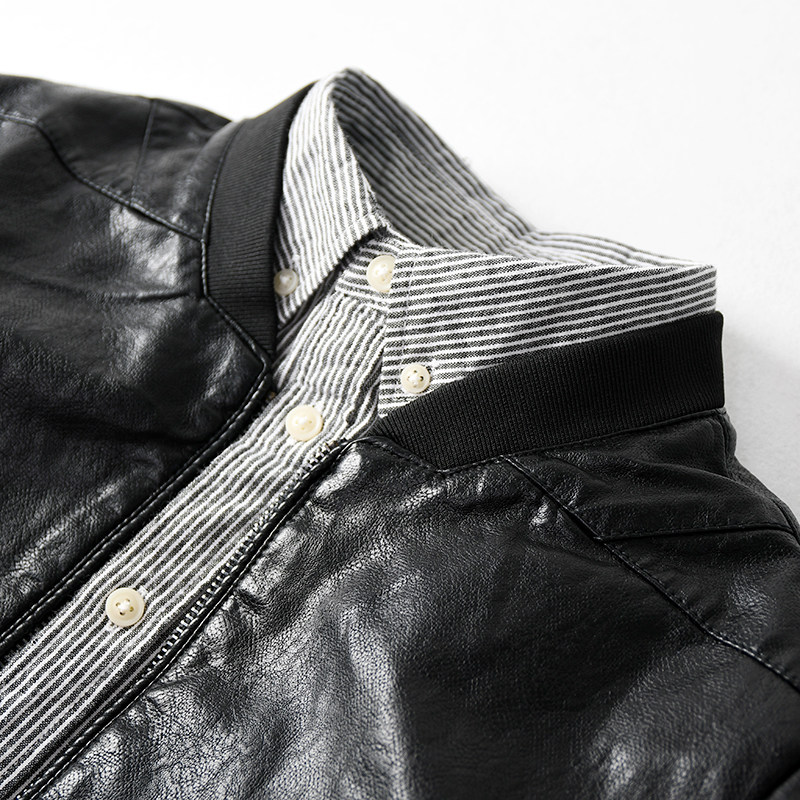 Leather jacket men's tide baseball collar leather jacket men's leather jacket Korean version handsome slim short jacket autumn PU leather