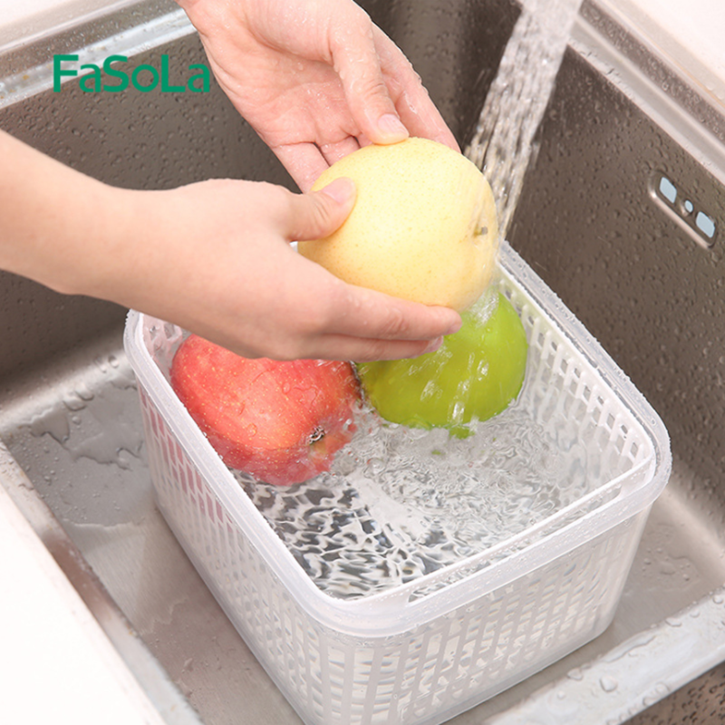Japan containing box Refrigerator refreshing box Double food Vegetable Storage Box Finishing Box Plastic Kitchen Drain Box