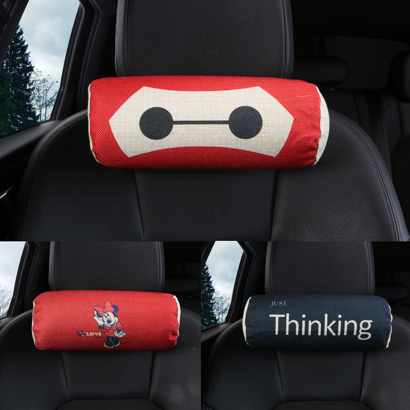 Car Pillow Car Linen Neck Pillow Padded Cotton Cartoon Leaning Pillow Four Seasons Universal Round Pillow Cervical Spine Headrest