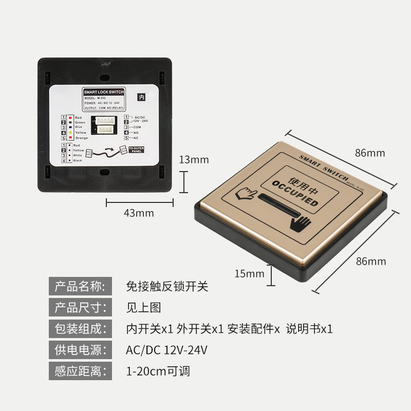 JUUBU Jiub smart gated automatic door touch type switch automatic anti-lock contact anti-lock switch make-up room