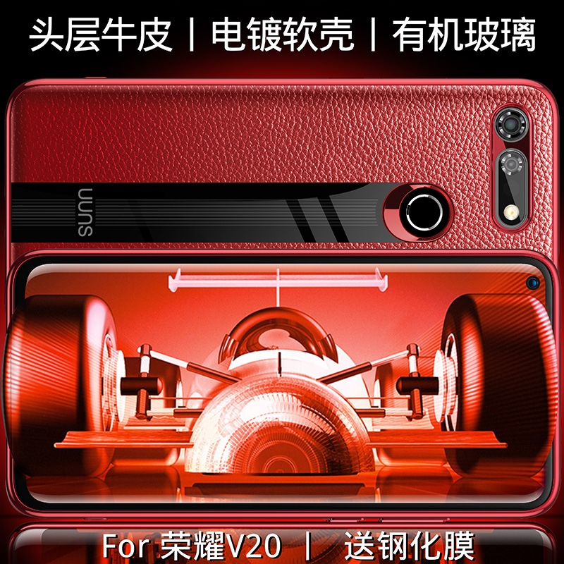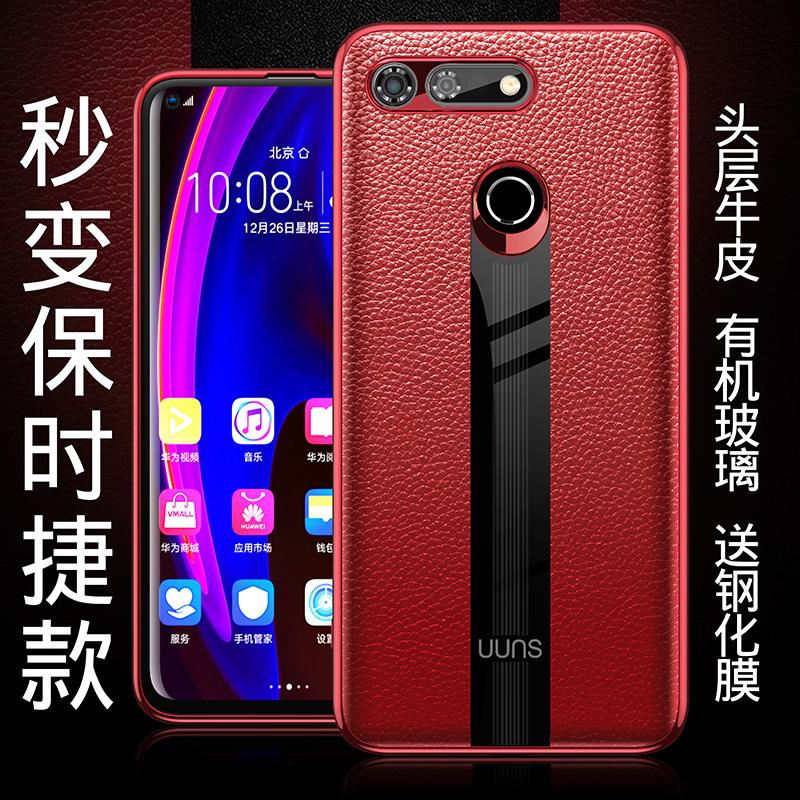 Applicable Huawei Honor v20 mobile phone protection shell real cow leather honor20i limited edition protective sleeve upscale ultra-thin COL-AL10 liquid silicone gel soft full package anti-fall HRY-AL00