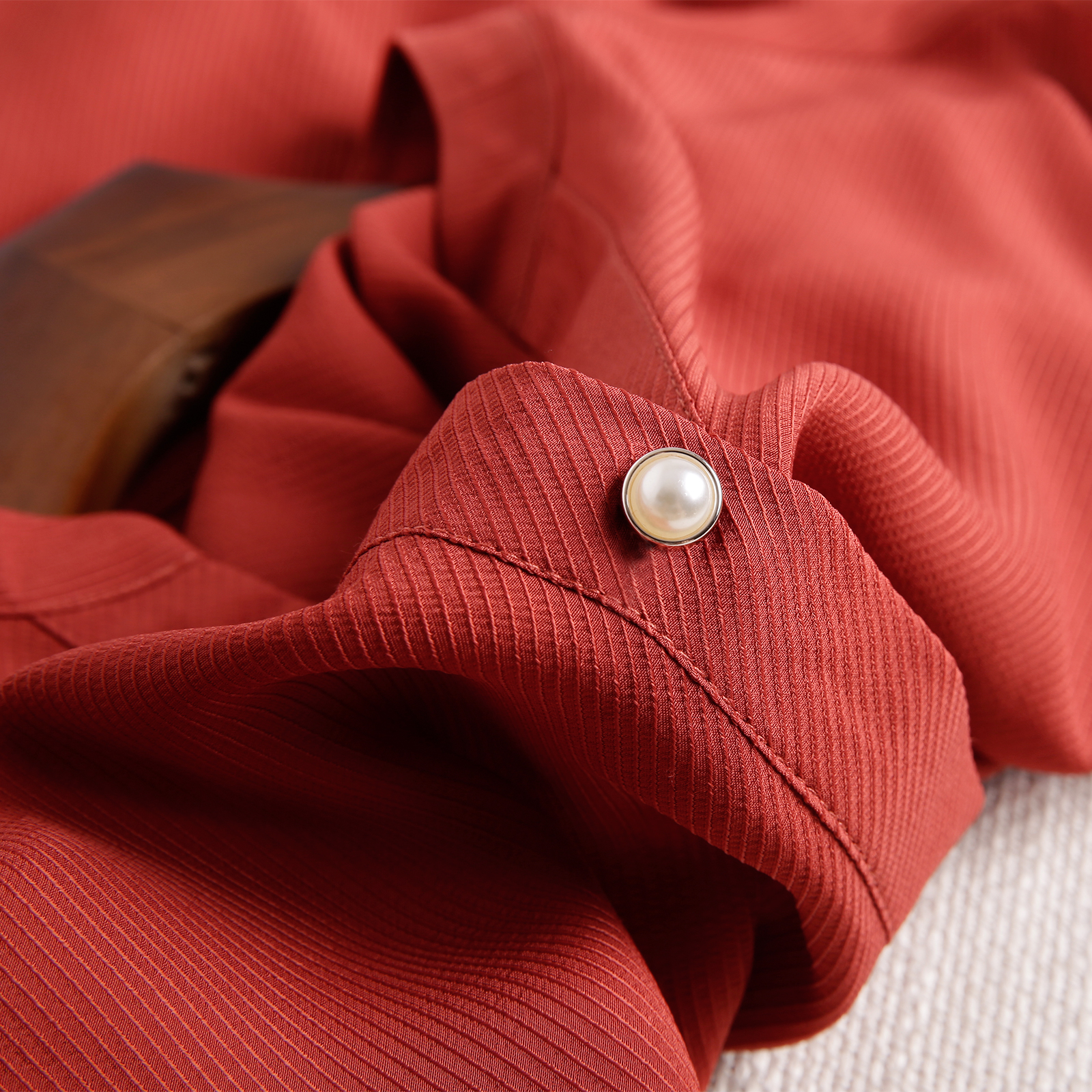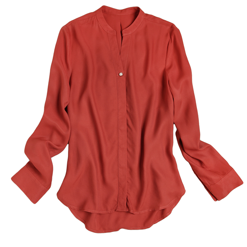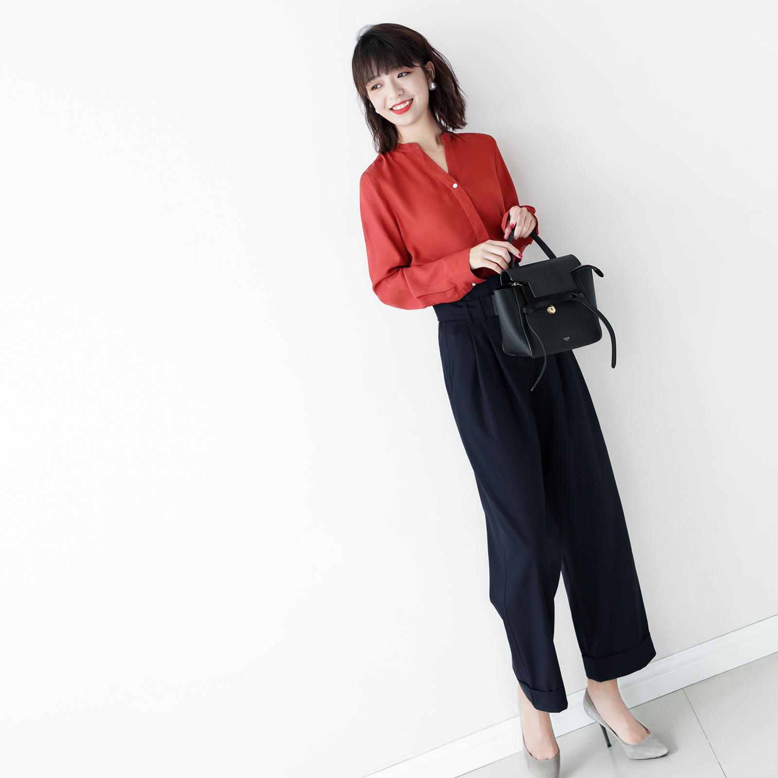 The owner recommends stunning stove red explosion beauty skin white V-shaped open collar solid color long sleeve shirt Autumn new