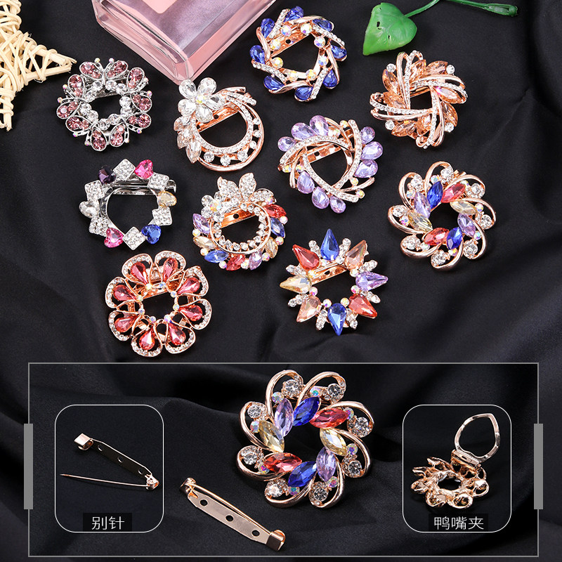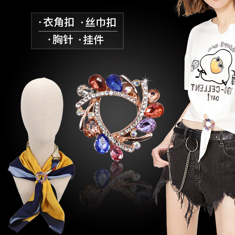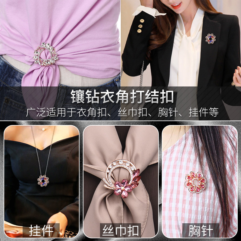 Rhinestone Clothes Corner Knotted Clothes T-shirt Shirts Hem Decorative Buckles Women's High-end Versatile Silk Scarf Buckle Brooch