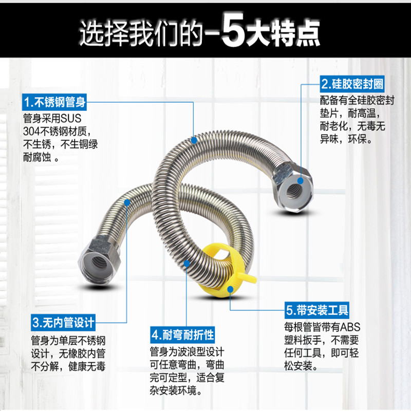 304 stainless steel encrypted bellows 4 sub-water pipe hot and cold explosion-proof hose water heater into the water outlet pipe