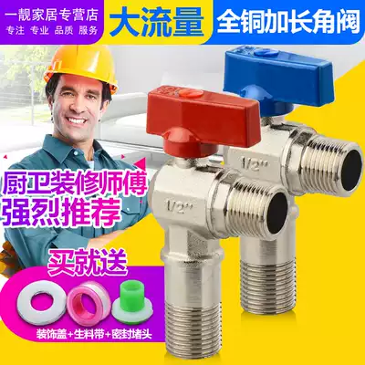 All copper thickened large flow triangle valve toilet stop valve extended hot and cold water water heater 4-point door switch horoscope
