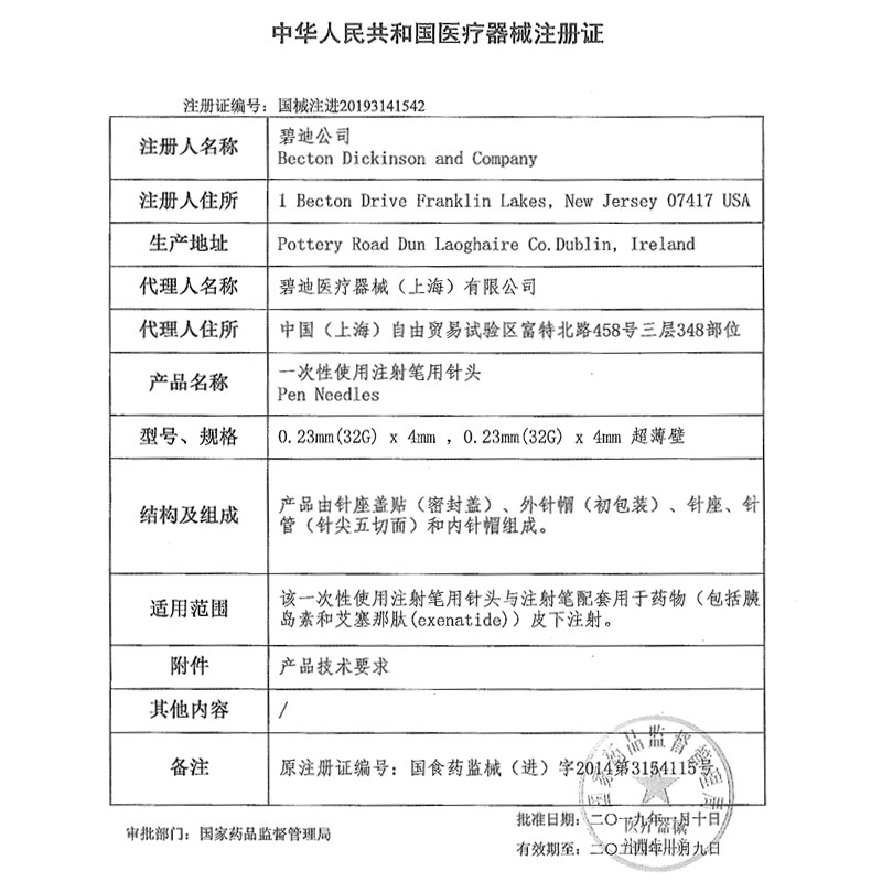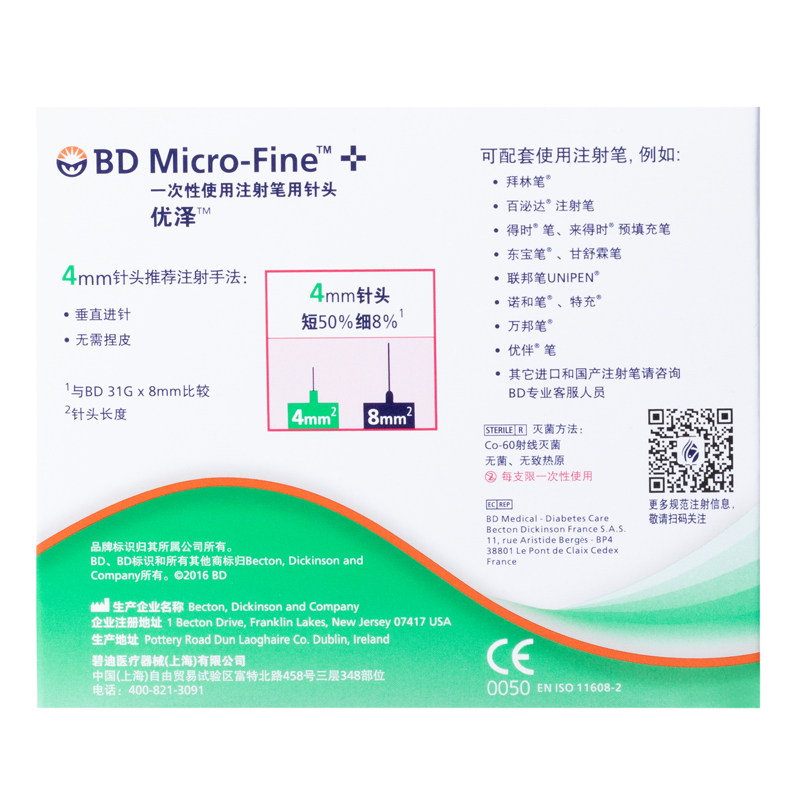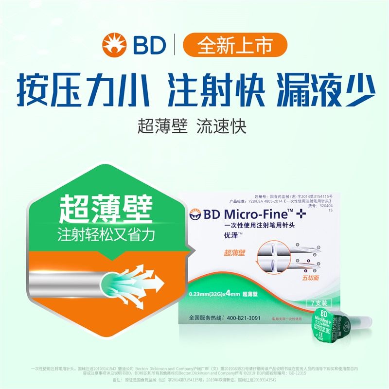 BD YouZee 0 23 * 4mm7 Branched Diabetes Insulin Injection Pen Disposable Sterile Needle Ultrathin Wall