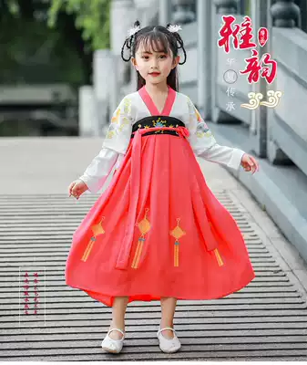 Girls' Hanfu Chinese Elements Improved Antiquity Princess Skirt Spring and Autumn Dress Tang Dress Ancient Chinese Style