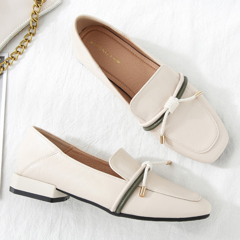 Loafers women's thick heel 2021 autumn thin square toe slip-on British small leather shoes soft leather deep mouth low-heeled single shoes