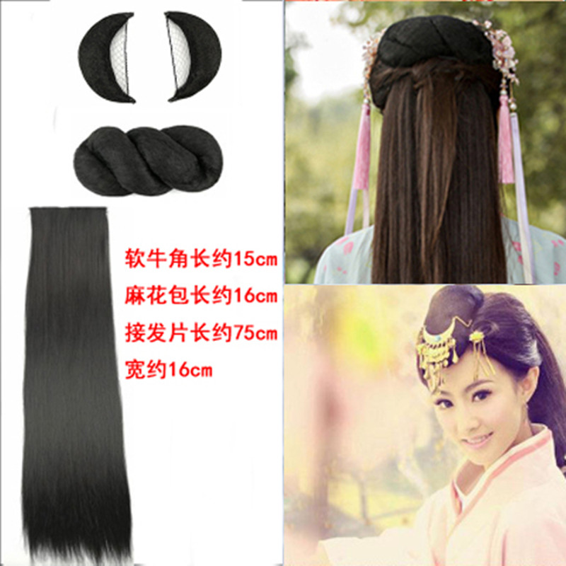 Wig Woman Short Hair Full Headgear Style Ancient Dress Hanfu Horn Twist Bouquet Gufeng Jacket Dresses one thousand Bone Mat Hair Pack Composition