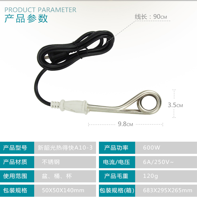 New Shaoguang A10-3 electric heating tube Small power hot fast 600W student dormitory hot water stick Electric kettle stick