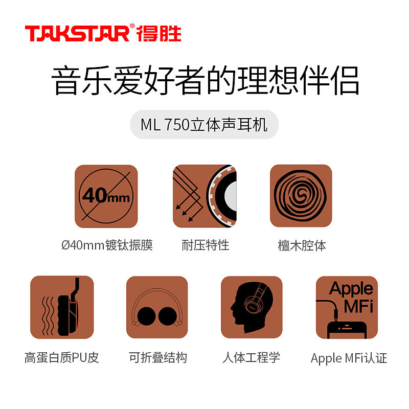 Takstar ML 750 Portable Head-mounted Stereo Headphones Foldable Music Headphones