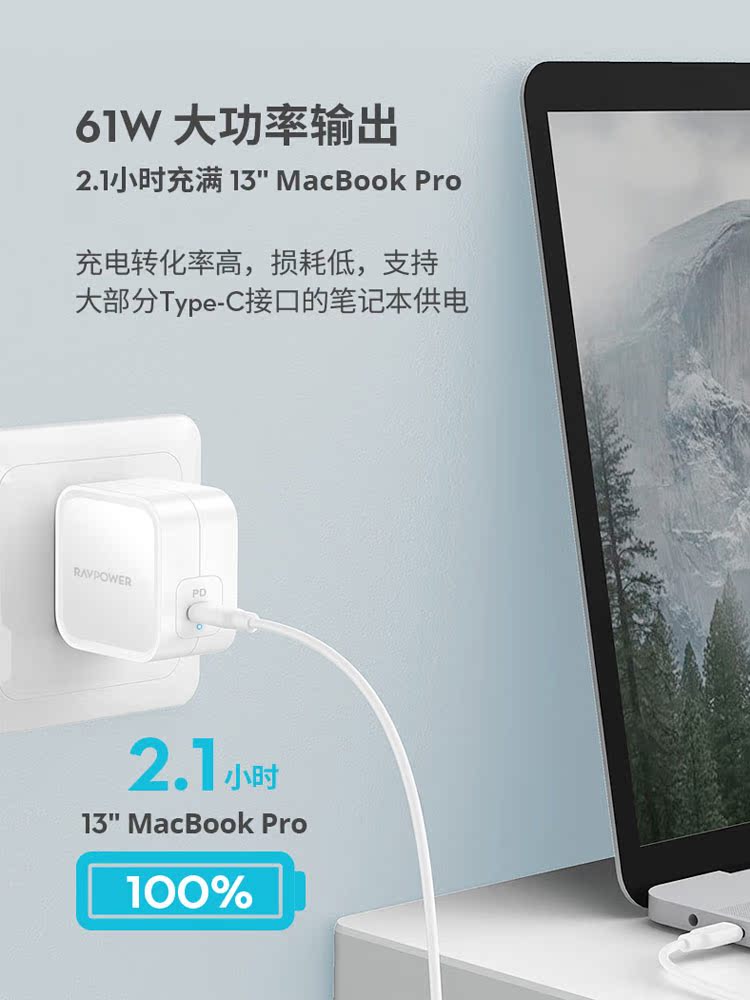 RAVPower gallium nitride charger PD61W fast charging head universal iPhone13 apple notebook macbook